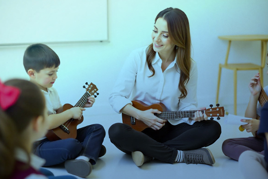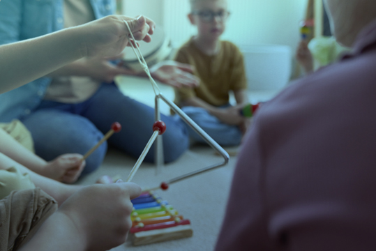 Em sessões de grupo, a interação musical promove a escuta mútua, a colaboração e o desenvolvimento de habilidades sociais, mesmo em indivíduos com dificuldades de comunicação verbal.